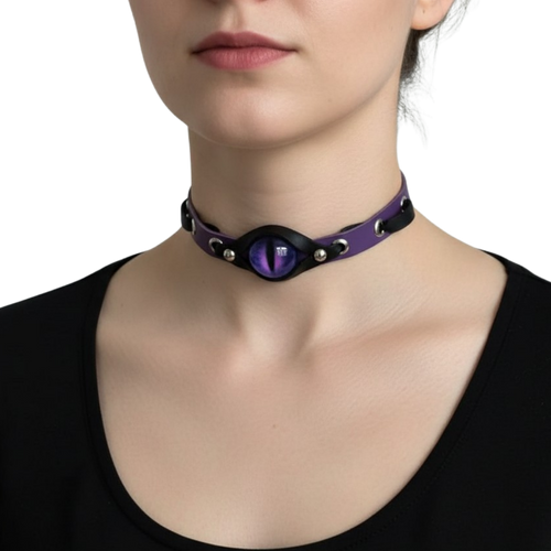 Goth Style Adjustable PU Leather Demon Eye Choker
