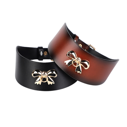 High-end genuine leather SM accessory, golden bowknot erotic leash collar, alternative choker